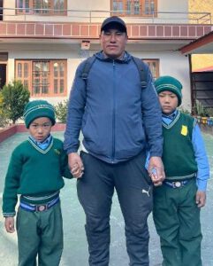 Der 15-jährige Suresh Tamang und seine Geschwister Pratima (11) und Sarjo (9) kommen aus dem kleinen Dorf Mentok Gan, das gegenüber von Briddhim auf dem Berghang liegt. Dort leben ihre Eltern Sangmo und Lhakpa. Die Familie ist sehr arm, denn wegen eines gebrochenen Beins kann der Vater nicht arbeiten und der Mutter fiel es schwer ihre Kinder gut zu ernähren. Schulgebühren zu bezahlen, war für Sangmo und Lhakpa schon immer unerschwinglich. Dank verschiedener Teil-Patenschaften konnten Suresh und Pratima aber im Dezember 2020, Sarjo dann 2023 in der Gosainkunda English Boarding School eingeschult werden.