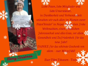 Im Namen der unterstützten Menschen in Nepal und Indien, unserer Teams dort vor Ort und unseres Teams hier in Deutschland wünschen wir unseren Paten, Mitgliedern, Unterstützern und allen Menschen frohe Weihnachten, besinnliche Feiertage und einen friedlichen Jahreswechsel. Wir gehen mit großer Dankbarkeit für die viele Unterstützung und all das Mitgefühl ins neue Jahr. Möge es ein friedliches und gesundes Jahr für alle Wesen werden!