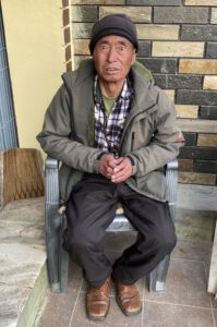 Der 68-jährige Lobsang Lama wurde im Tsum Valley geboren und hatte eine traurige Kindheit. Er konnte nie zur Schule gehen. Seine Eltern verstarben, als er noch ein Kind war und da Lobsang auch keine Geschwister hat, musste er schon früh selbst für seinen Lebensunterhalt sorgen, weshalb er begann für die Nachbarn Holz zu sammeln und sich um ihr Vieh zu kümmern. Es gelang ihm nie eine richtige Arbeit zu finden und vor einiger Zeit kontaktierte eine Bekannte, die auch Pema Lama, der ebenfalls seit ein paar Jahren im Pflegeheim lebt, half, Hope & Challenge und bat darum auch Lobsang Lama in der Einrichtung aufzunehmen. Seit Februar 2025 lebt Lobsang im Heim, wo es ihm gut geht. Er vermisst nur manchmal das Dorfleben und seine Bekannten dort.