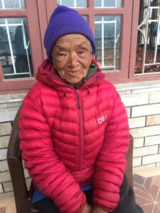 Die 73-jährige Tsechik Puti Sherpa wurde mit körperlichen Anomalien bereits geboren. Zwar war sie ein Einzelkind, doch ihre Eltern waren so arm, dass sie ihre Tochter nicht zur Schule schicken konnten. Durch die Anomalien hielten die Menschen in ihrer Umgebung Abstand zu ihr und Tsechik Puti konnte nie ein richtiges soziales Miteinander erleben und erlernen. Nachdem ihre Eltern starben wurde ihr Leben noch härter und sie musste vieles durchstehen. Nur ihre Nachbarn halfen ihr mit der Versorgung von ein wenig Lebensmitteln und etwas Arbeit in ihrem Haushalt. Ab dem Alter von 70 Jahren entwickelte Tsechik Puti mehr Aggressionen und kommt seitdem nicht mehr alleine zurecht. Ihre Nachbarn sahen, dass sie jemanden braucht, der sich wirklich um sie kümmert und so kontaktierten sie über Freunde in Kathmandu Hope & Challenge. Tsechik Puti wurde im Mai 2024 im Pflegeheim aufgenommen, wo sie nun sehr zufrieden ist.