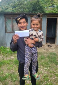 Die Geschwister Subash (8) und Sohana (5) leben mit ihrem Vater Dawa Gombu und dessen Eltern zusammen in Tarsa. Die Mutter der Kinder war vor längerer Zeit zur Arbeit ins Ausland gegangen um eigentlich um damit die Schulgebühren für Subash und Sohana bezahlen zu können. Nach einigen Monaten brach sie aber den Kontakt zur Familie ab. Später kam sie ins Dorf zurückgekehrt ist, fand einen neuen Partner und kümmert sich nicht mehr um ihre Familie. Dawa fällt es sehr schwer die Kinder alleine zu versorgen. Er selbst konnte bis zur 5. Klasse eine Schule besuchen, hat jedoch keinen Abschluss und nur unregelmäßige Verdienstmöglichkeiten. Dabei ist er meist auf Tagelöhner-Arbeiten angewiesen, aber er tut was er kann. Zurzeit hängt er an der tibetischen Grenze, wo er Arbeit suchen wollte, fest, da er wie viele andere Menschen aus der Region wegen zahlreicher Erdrutsche nicht ins Dorf zurückfahren kann. Außer den Kindern leben auch Dawas Eltern mit im Haushalt, die er unterstützt, da sie für Feldarbeit zu alt sind. Die Hütte, die die fünf teilen, ist sehr einfach. Trotzdem bleibt nach der Grundversorgung der Familie kein Geld für Schulgebühren, Bücher oder Uniformen übrig. Alle diese Dinge sind essenziell für den Schulbesuch in dieser Region. Dawa wünscht sich für seine Kinder eine gute Schulbildung und hat sich in der Hoffnung auf Patenschaften an uns gewandt. Vor allem für Subash wäre es aufgrund seines Alters wichtig, dass er bald eine Chance bekommt. Doch es wäre sehr schön, wenn die Geschwister gemeinsam lernen und aufwachsen könnten.