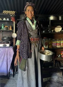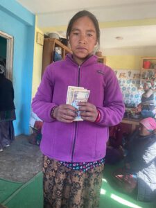 Palmo ist 55 Jahre alt. Ihr Mann Norchung (ein Bruder unseres Mitarbeiters Nyimas) ist bereits 2007 verstorben. Seitdem lebt Palmo alleine in Briddhim. Sie hat drei Erwachsene Kinder, die dank der harten Arbeit ihres Vaters, wie auch durch Patenschaften alle auf eine Schule in Kathmandu gehen konnten. Sie sind jedoch selbst zu arm, um ihre Mutter unterstützen zu können. Durch das schwere Erdbeben 2015 wurde das Wohnhaus der Familie völlig zerstört. Bei dem Wiederaufbau des Hauses hatten wir mit Spenden geholfen. Früher konnte sich Palmo mit etwas Feldarbeit selbst versorgen, obwohl es nicht mal für eine gute Ernährung gereicht hat. Seit ein paar Jahren jedoch leidet sie unter Bluthochdruck und Diabetes und muss regelmäßig Medikamente nehmen. Oft hat sie auch Migräne. Wie die meisten Menschen in Briddhim, die aufgrund gesundheitlicher Einschränkungen nicht mehr arbeiten können, erhält auch Palmo ca. 14 Euro monatlich von der Regierung, was aber nicht einmal ihre medizinische Versorgung deckt. So bleibt auch nichts für den Einkauf von Lebensmitteln. Seit Beginn ihrer Beschwerden können wir Palmo mit Patenschaften unterstützen, die Ende 2025 aber auslaufen wird. Dann blieben ihr nur noch 20 Euro monatlich aus der zweiten. Für die Versorgung mit den täglich benötigten Medikamenten und Nahrungsmitteln benötigt Palmo ab 2026 zusätzliche Unterstützung.