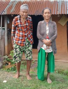 Tara Maya (65) und ihr Mann Tapas Bahadur (84) leben in Thakaltar Village. Zwar haben sie sechs erwachsene Kinder, doch sie alle leben in anderen Dörfern, haben ihre eigenen Familien und verdienen nicht genug um ihre Eltern zu unterstützen. Nur manchmal kommt eins der Kinder vorbei und bringt etwas zu Essen. Mit über 80 Jahren erhält Tapas Bahadur ein wenig Sozialhilfe vom Staat, doch da er regelmäßig Medikamente nehmen muss, bleibt nicht genug zum Leben übrig. Die beiden sind zu alt um Arbeit zu finden und benötigen unsere Hilfe für Grundnahrungsmittel. Seit Sommer 2024 hatte das Paar eine Patenschaft, die nun aber leider beendet werden musste. Um ihre Grundversorgung abzusichern, brauchen sie neue Unterstützung.